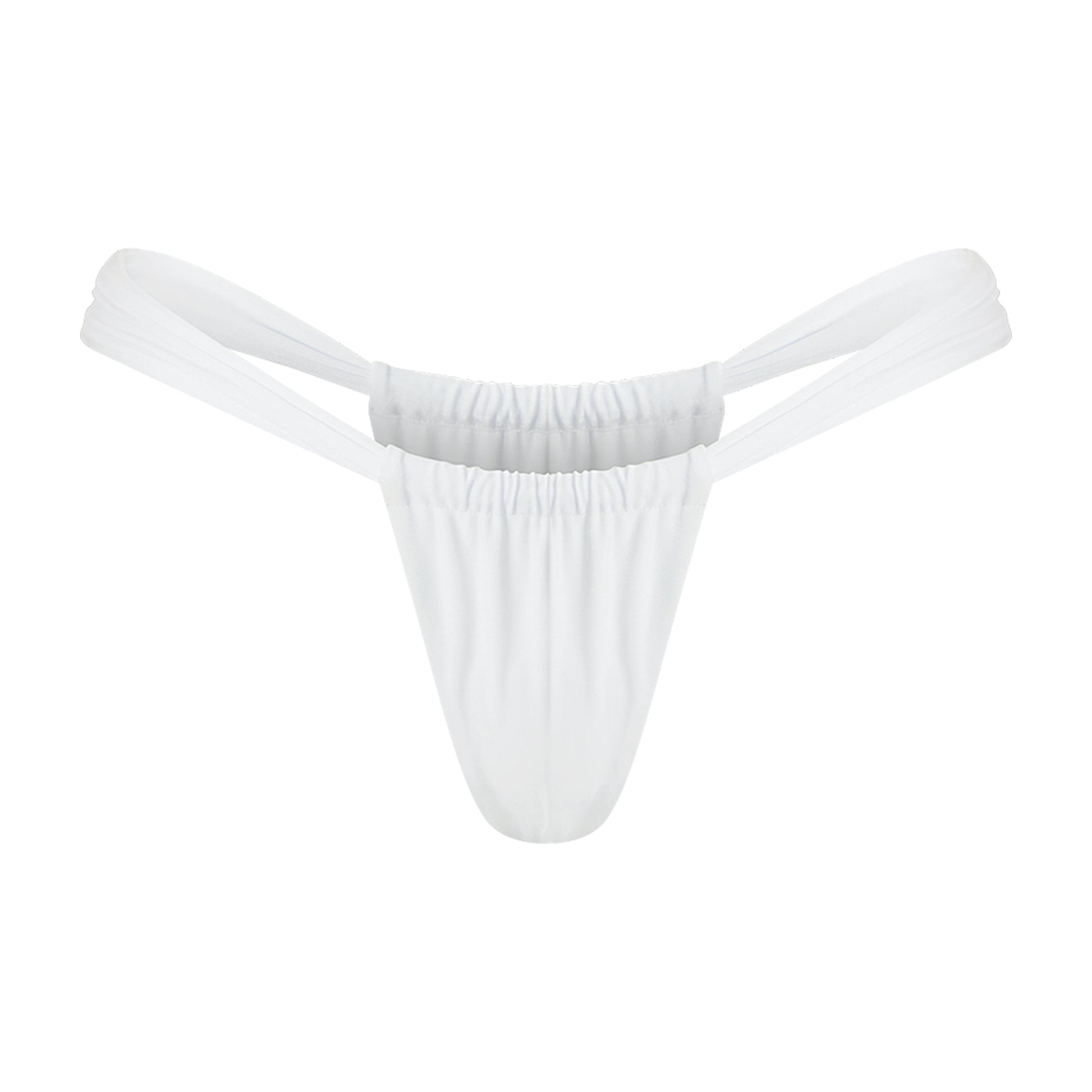 This bikini bottom features ruched detailing and wide straps made from four-way stretch satin fabric, offering customizable coverage to reveal as little or as much as you desire. It is adorned with 24K dipped hardware and a 2MM genuine Colombian emerald for that extra touch of glam.