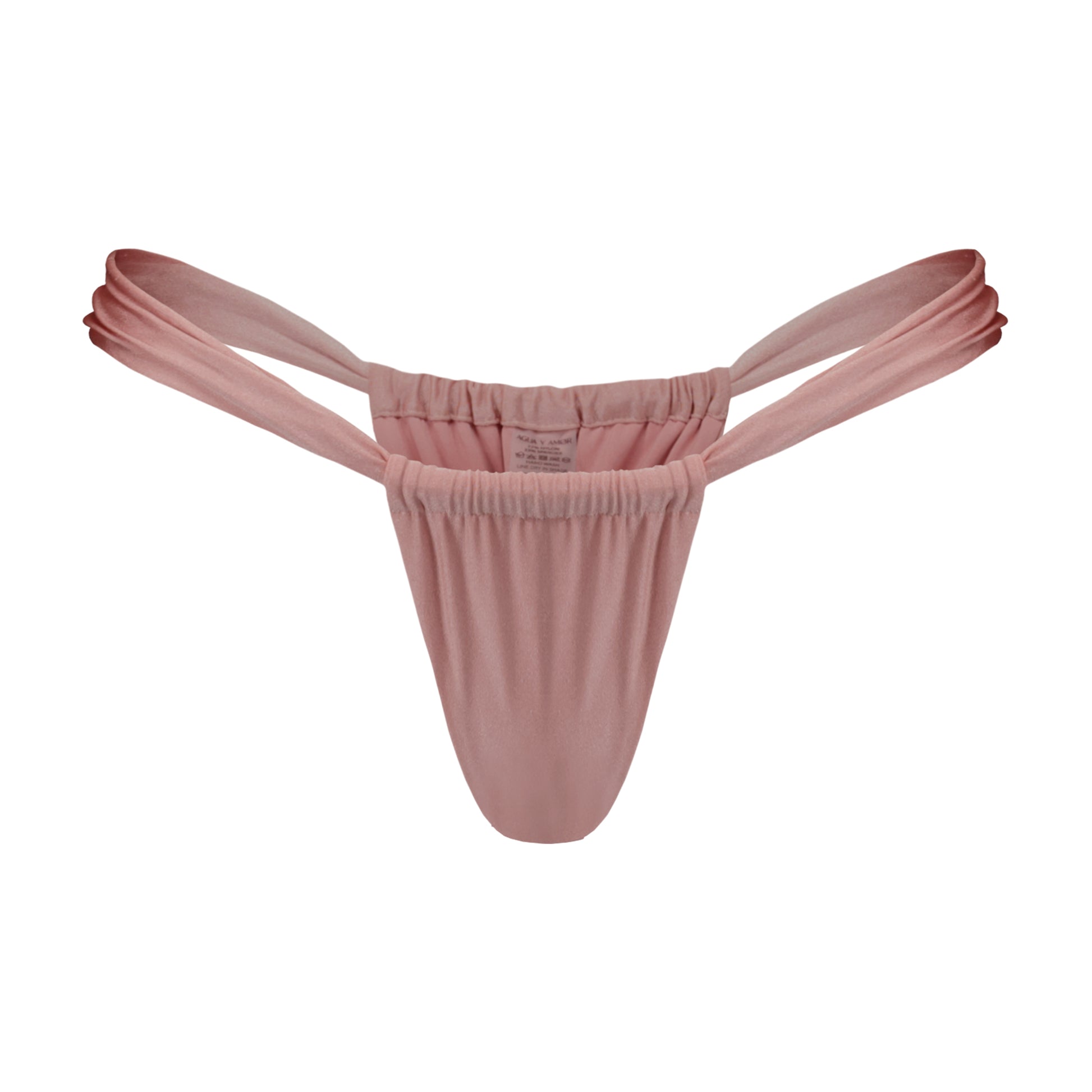 This bikini bottom features ruched detailing and wide straps made from four-way stretch satin fabric, offering customizable coverage to reveal as little or as much as you desire. It is adorned with 24K dipped hardware and a 2MM genuine Colombian emerald for that extra touch of glam.