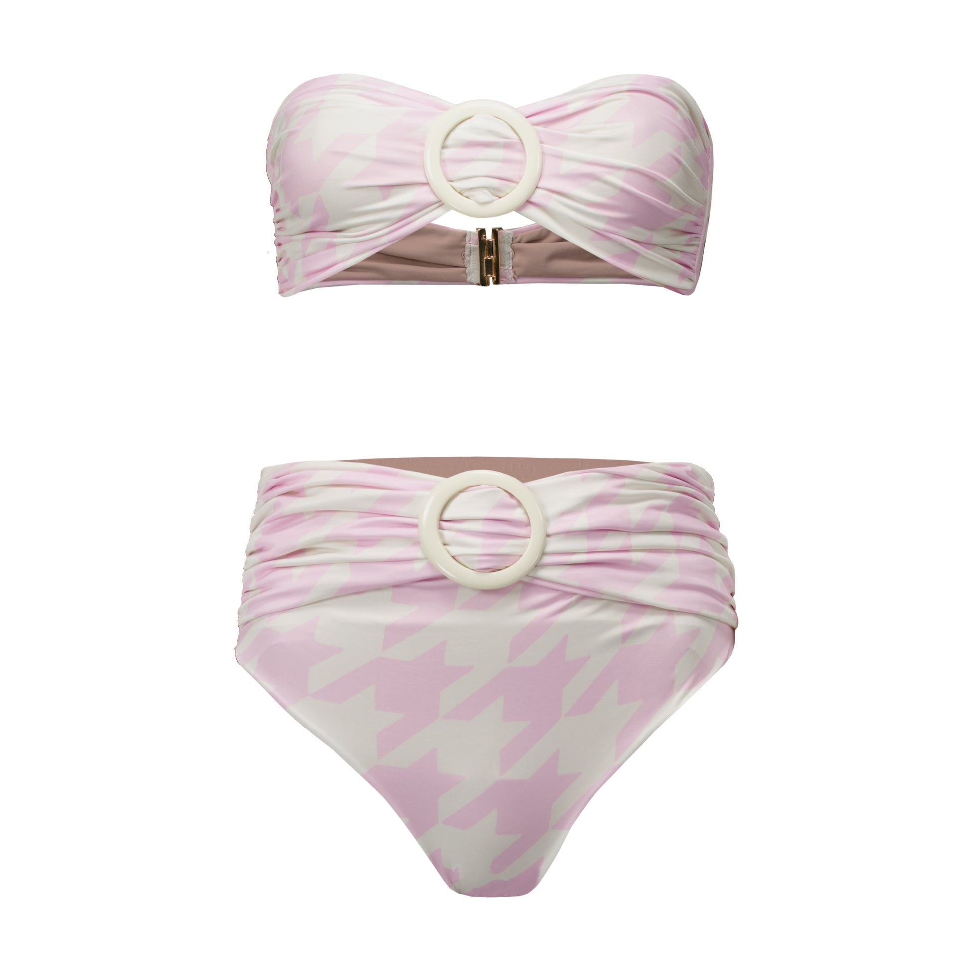 The Tie Melanie Bikini is all about effortless glam—featuring a timeless bandeau top with a bold acrylic hoop for a luxe touch. Made from ultra-soft, buttery fabric and finished with removable straps for versatile styling, it’s your go-to for elevated beach days